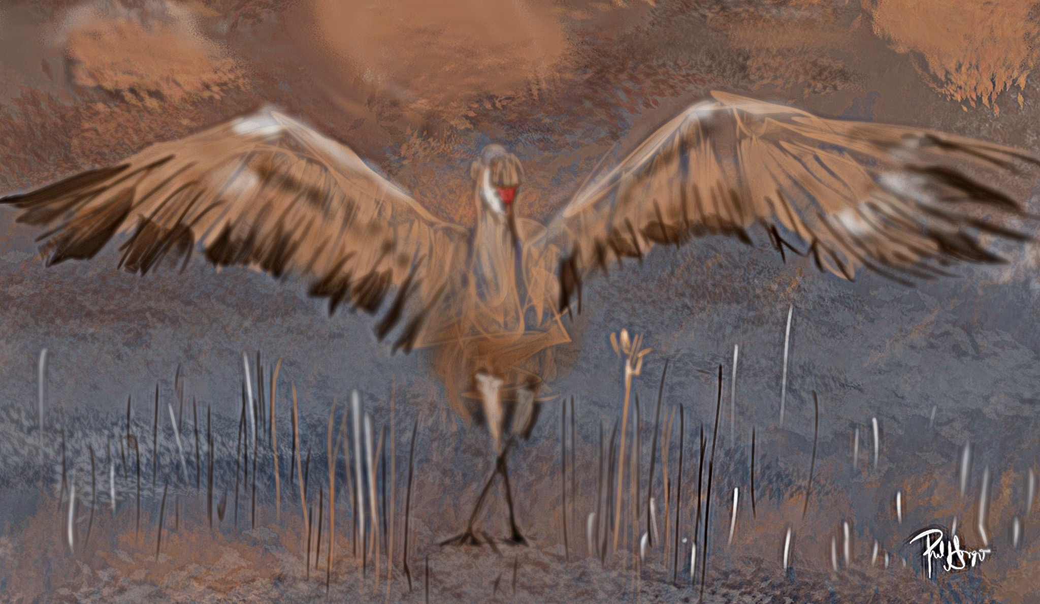 A buddy of mine got me thinking about Sand Hill Cranes here in Ohio. So, while Annyth gets her hair cut, I had time to play around…over a Great Lakes Conway’s Irish Ale