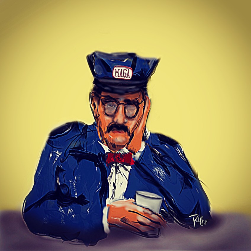 MAGA Repairman Published December 21, 2018 at 2048 × 2048 in MAGA Repairman Unlike the Maytag Repairman, the MAGA repairman has so much to fix, he doesn’t know where to start. Share this: Share on Facebook (Opens in new window) Facebook Email a link to a friend (Opens in new window) Email Share on LinkedIn (Opens in new window) LinkedIn More Share on Bluesky (Opens in new window) Bluesky Like Loading...