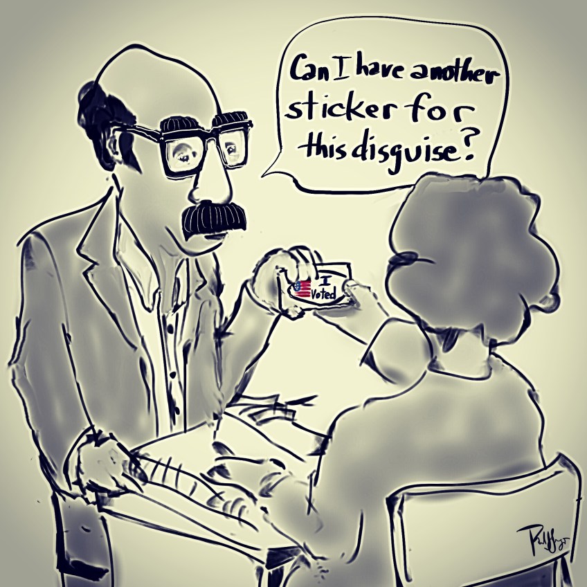 Voter Disguises Published November 30, 2018 at 2048 × 2048 in Voter Disguises I voted, and voted, and voted Share this: Share on Facebook (Opens in new window) Facebook Email a link to a friend (Opens in new window) Email Share on LinkedIn (Opens in new window) LinkedIn More Share on Bluesky (Opens in new window) Bluesky Like Loading...