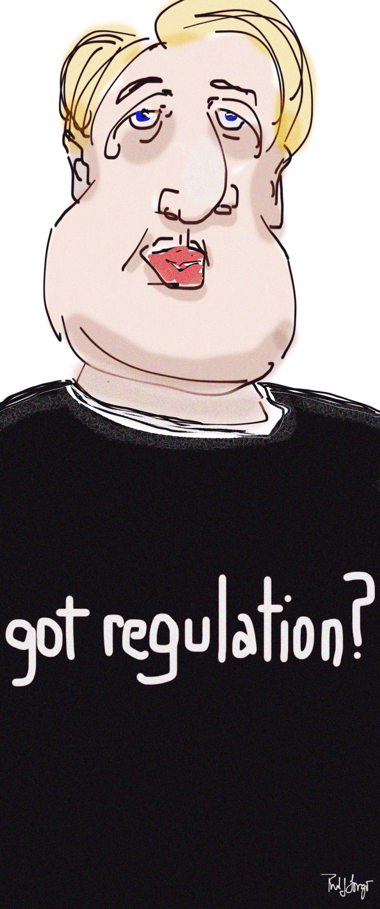 Deregulation Posted on February 10, 2015 by portfoliolongo.com I was so groggy last night when I posted this that I neglected to add my comment, my take on the notion of regulation. So, here it is: even our exceptions and exemptions are regulated. Share this: Click to share on Facebook (Opens in new window) Facebook Click to email a link to a friend (Opens in new window) Email Click to share on LinkedIn (Opens in new window) LinkedIn More Click to share on Bluesky (Opens in new window) Bluesky Like Loading... Related