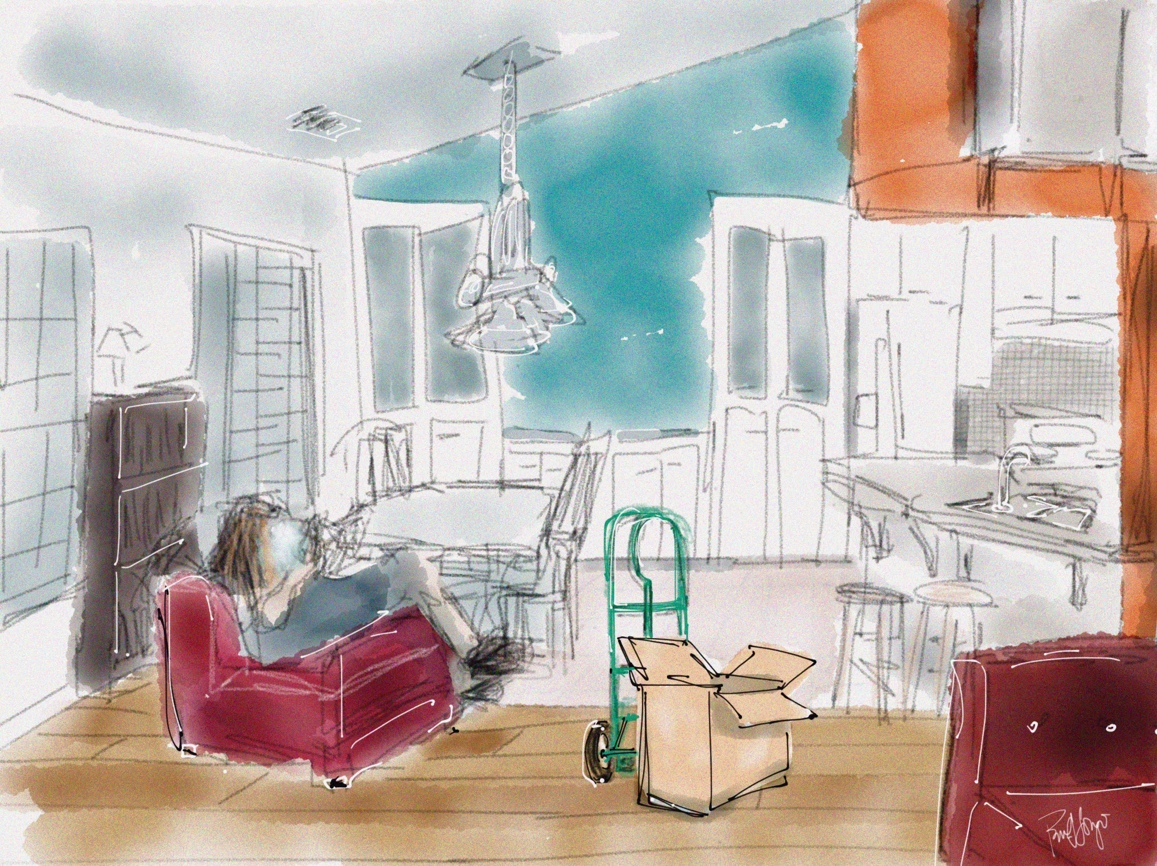 Here’s a quick sketch in Paper by Fifty Three, tweaked in Procreate. Now back to unpacking before our first trip of the day to Lowes!