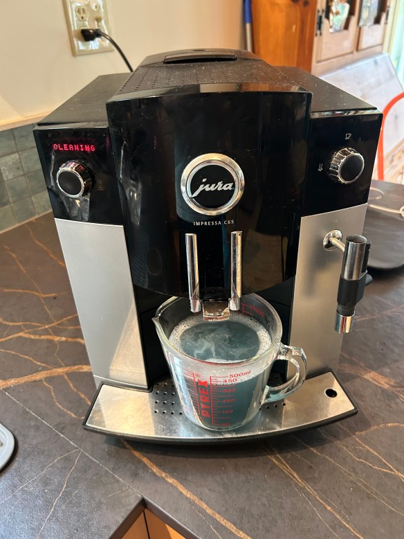 Update: July 29, 2025. Our Jura coffee maker is now 10 years old, so I’m adding a couple of photos below that might help tell the story about what I’ve been doing every 3 months or so to enjoy coffee this way.