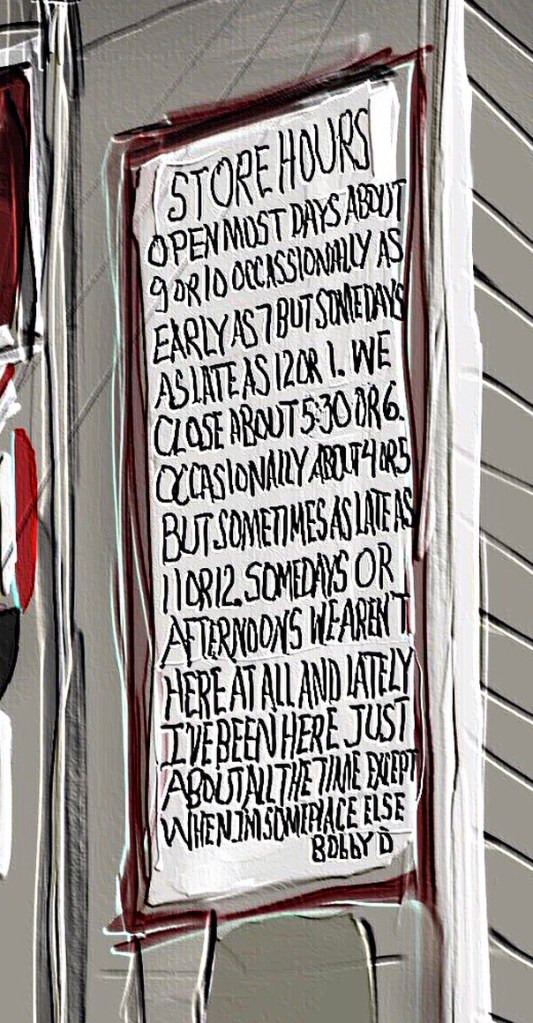 Bobby D’s Hours Published September 5, 2020 at 604 × 1160 in Bobby D’s Bobby D’s Hours Share this: Share on Facebook (Opens in new window) Facebook Email a link to a friend (Opens in new window) Email Share on LinkedIn (Opens in new window) LinkedIn More Share on Bluesky (Opens in new window) Bluesky Like Loading...