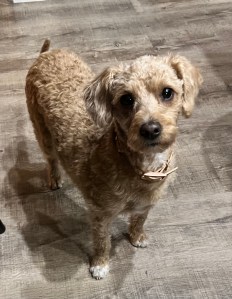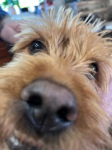 Alani’s one of four beautiful dogs, including Caula, a Miniature Dachshund; as well as Shiloh and Nova, Toy Labradoodles, who are sisters. There’s a cat too, Hula, a loyal Tabby. Now back to Alani, AKA Lani, Alonzo, A-Lonzo, who spent a lot of time on my lap. She’s a Mini Labradoodle offspring of a Rare Red Labrador and a Poodle.