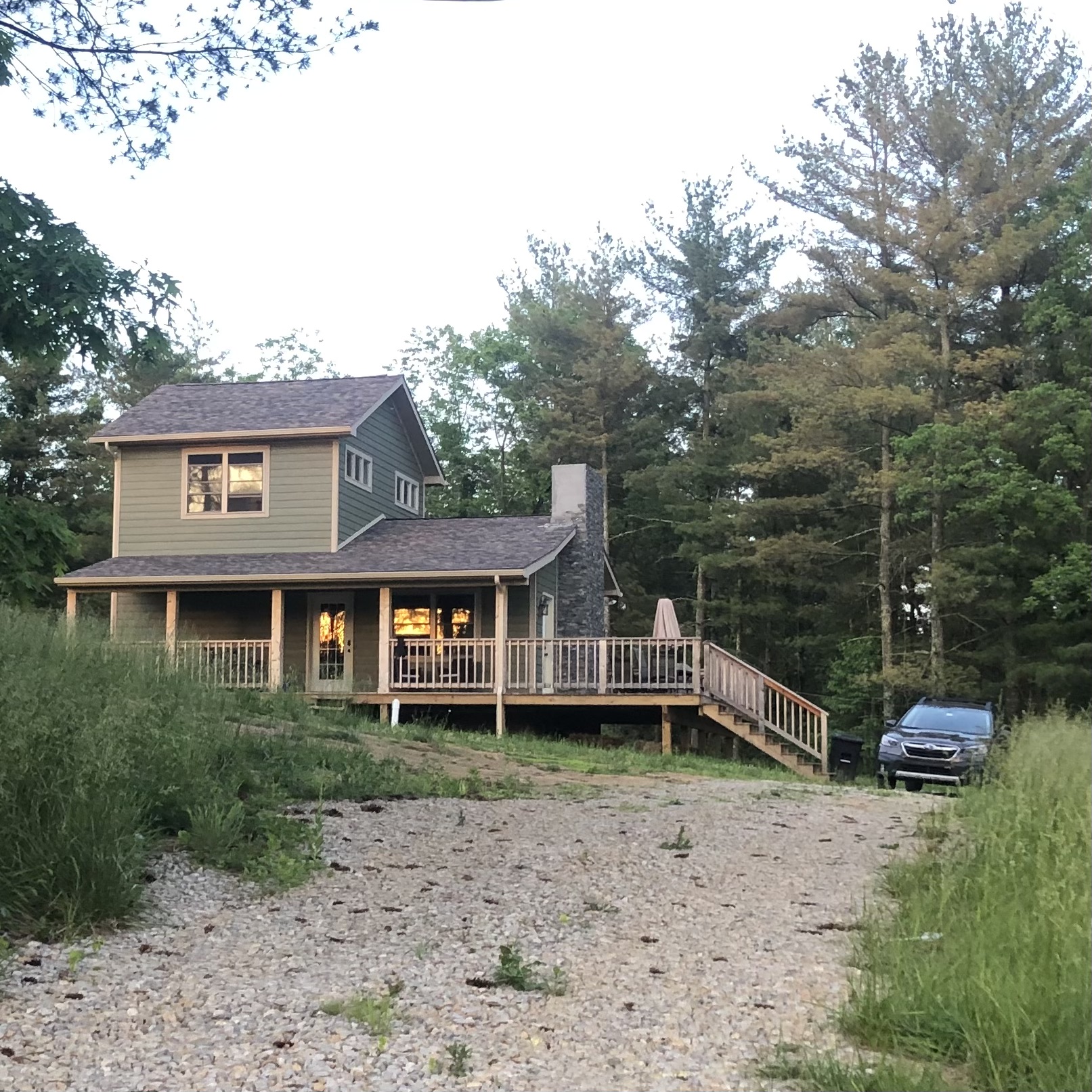 Yesterday evening Annyth and I, each of us with a glass of wine, sat out on the deck of our rental listening to the birds as they sang the day to a close. I had my iPad. Before night fell and lightning bugs began appearing, this is what I could see through the deck’s railings: