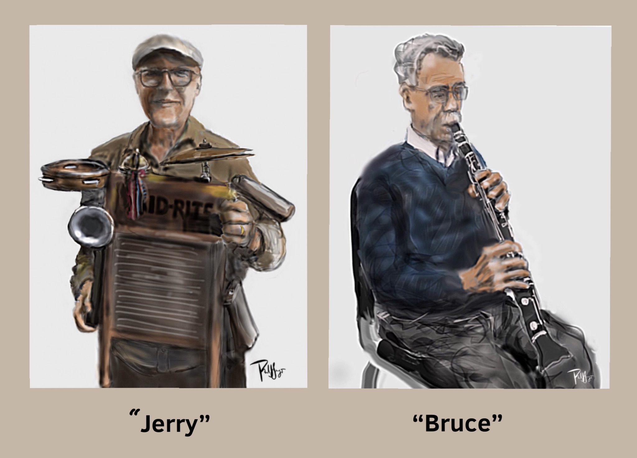“Lotfi and Tar,” “Keep on Blowin’,” and “Jerry” are part of “Provoking Thought,” a show of the Contemporary Humanistic Artist Association (CHAA) of Merced, CA, March 10, to April 17, 2021 at the Merced Multicultural Arts Center (MAC).