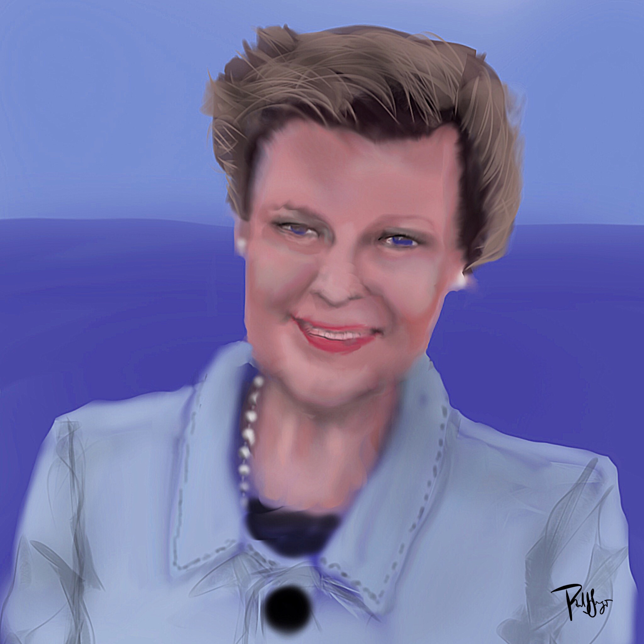 [My way of spending a little extra time with her. One hour and twenty-five minutes and 3,138 brush strokes, to be exact, in Sketch Club on an iPad Pro using an Apple Pencil, plus a tweak in iColorama.]