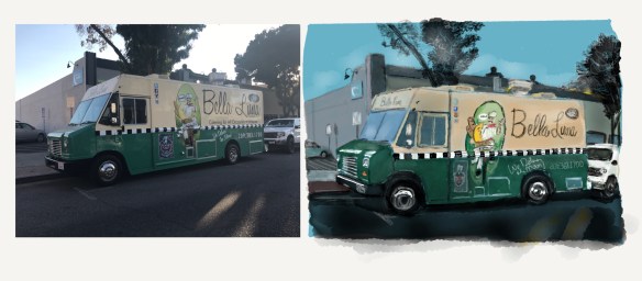The other night, after we went to see Dunkirk, now that’s patriotism, and had a beer at the 17th St. Pub, we strolled over to Bella Luna for another beer and some great grub. On the way out Ann snapped a shot of the Bella Luna food truck out front. She’s got such a good eye! She’s always on the look out for cool things that I might draw on my iPad.