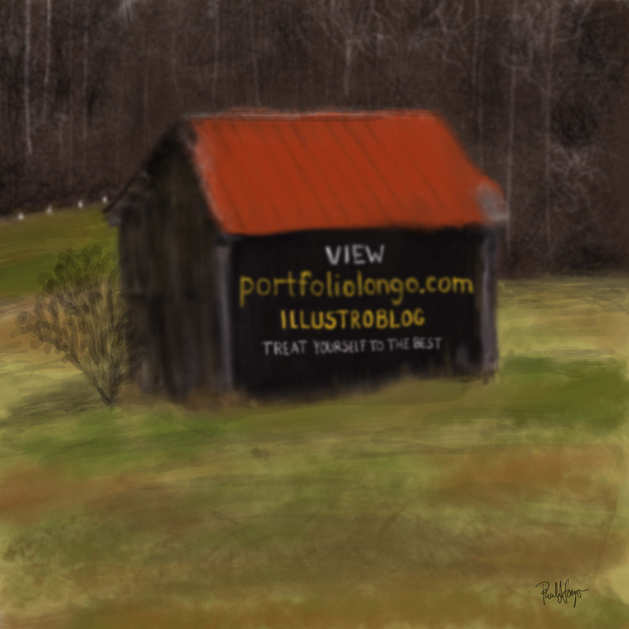 I grew up seeing Mail Pouch barns all over the place. I hope nobody minds that I went ahead and had a little fun doing some digital marketing in Procreate on my iPad Pro with the Apple Pencil and my very own finger using this reference photo in a freehand drawing.