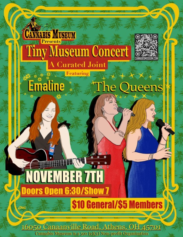 That’s Emaline Duquette, and what a pleasure it was to hear her soulful voice at a Tiny Museum Concert at the Cannabis Museum the other night.