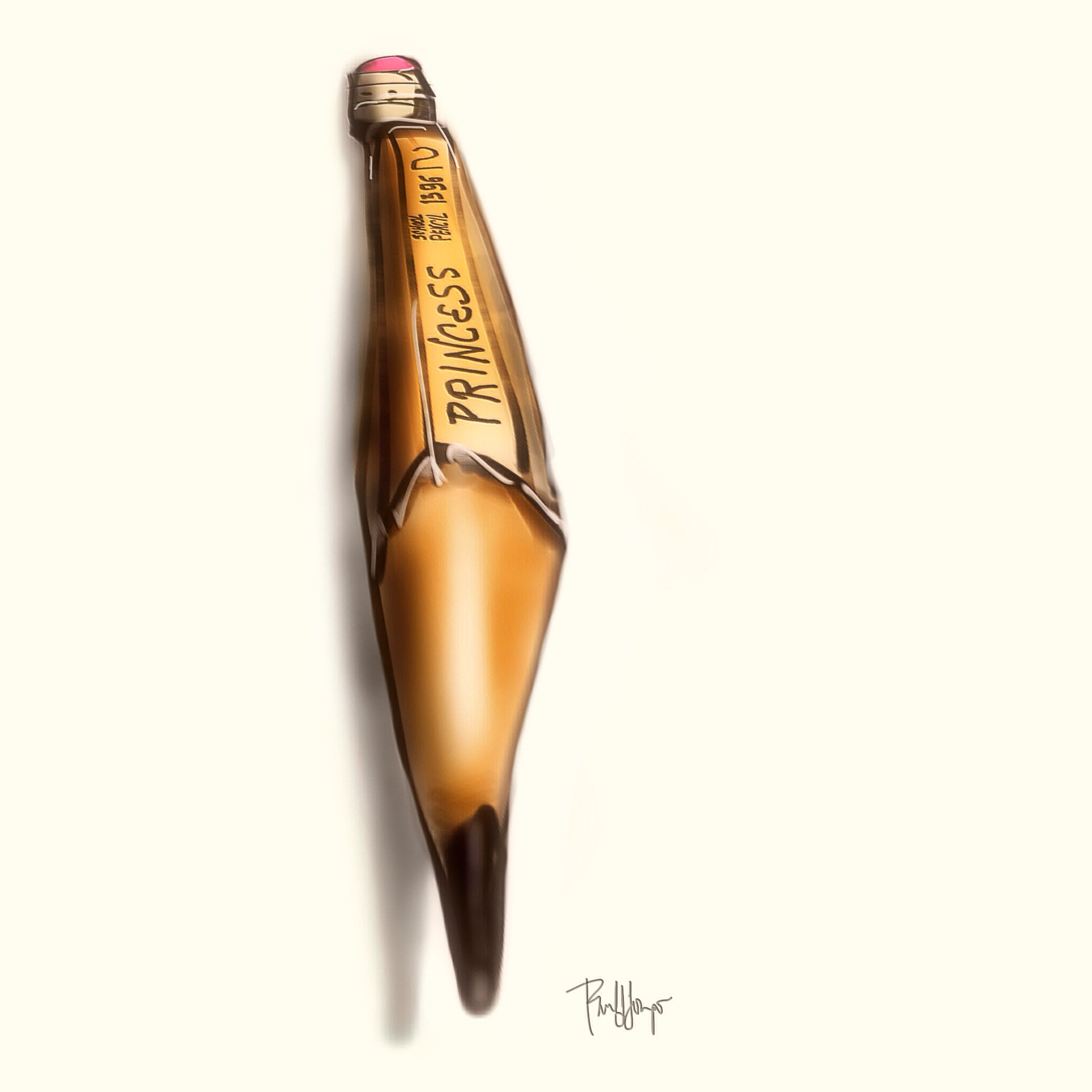 The Princess No. 2 School Pencil by Eberhard Faber has enchanted me for several decades; and I’ve tried to express this enchantment over time in traditional and digital ways. I love the shape, colors, and feel of this simple and elegant artifact, which has been instrumental in the expression of so many ideas, simple and complex. I’m moved by the unmistakable ways in which pencils sacrifice themselves physically in fulfillment of their instrumental, expressive mission; their erasers are often the first to go! Pencilitis and Milonga No. 2, both rendered freehand on an iPad, highlight in different ways the ordinary and extraordinary nature of this useful artifact.