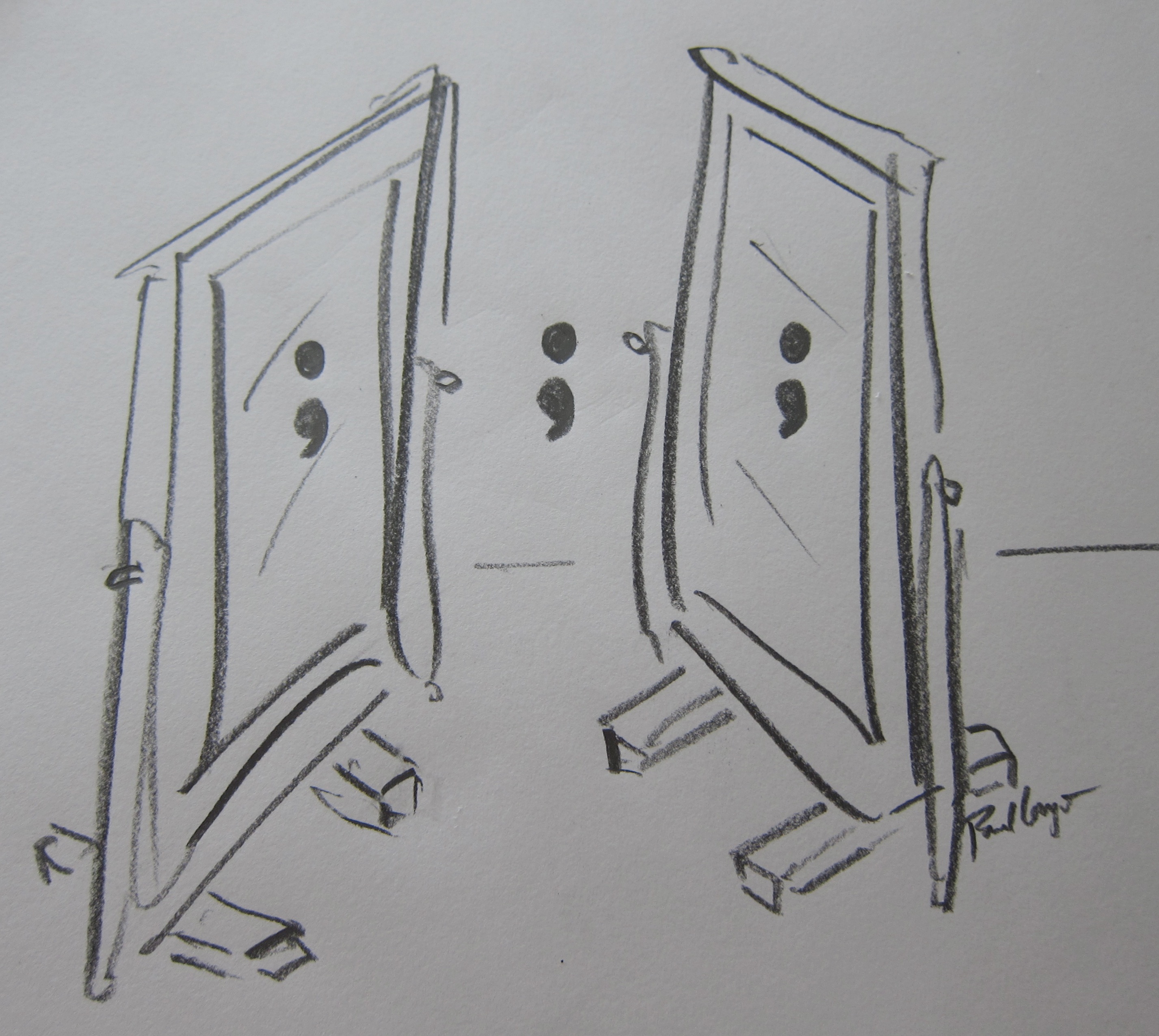 I’ve done some mirrors in the past. In the above drawing, because of the iPad drawing app and the corresponding techniques at my disposal, I deviated from what had almost become an irreversible pattern, as depicted in these examples: