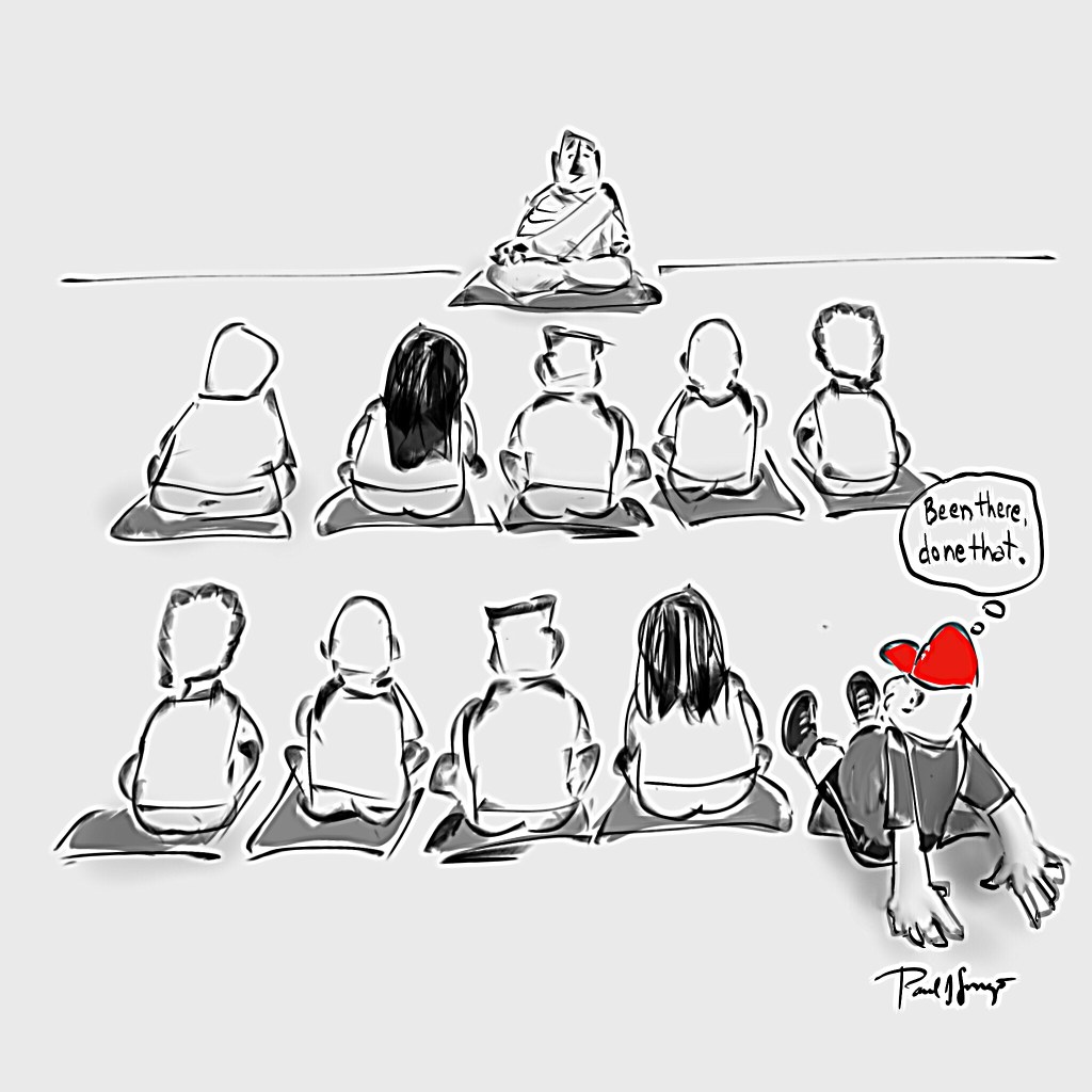 Sometimes when I’m on my cushion, my mat, or my iPad Pro, I lean into an arbitrary assignment automatically delivered to me by this mostly destructive curriculum. I do so because I’ve learned that avoiding or denying them nourishes them. I’ve learned that leaning in requires an effort, takes practice, and yields dividends. I wonder if it’s a sin to vacate the Present Moment?