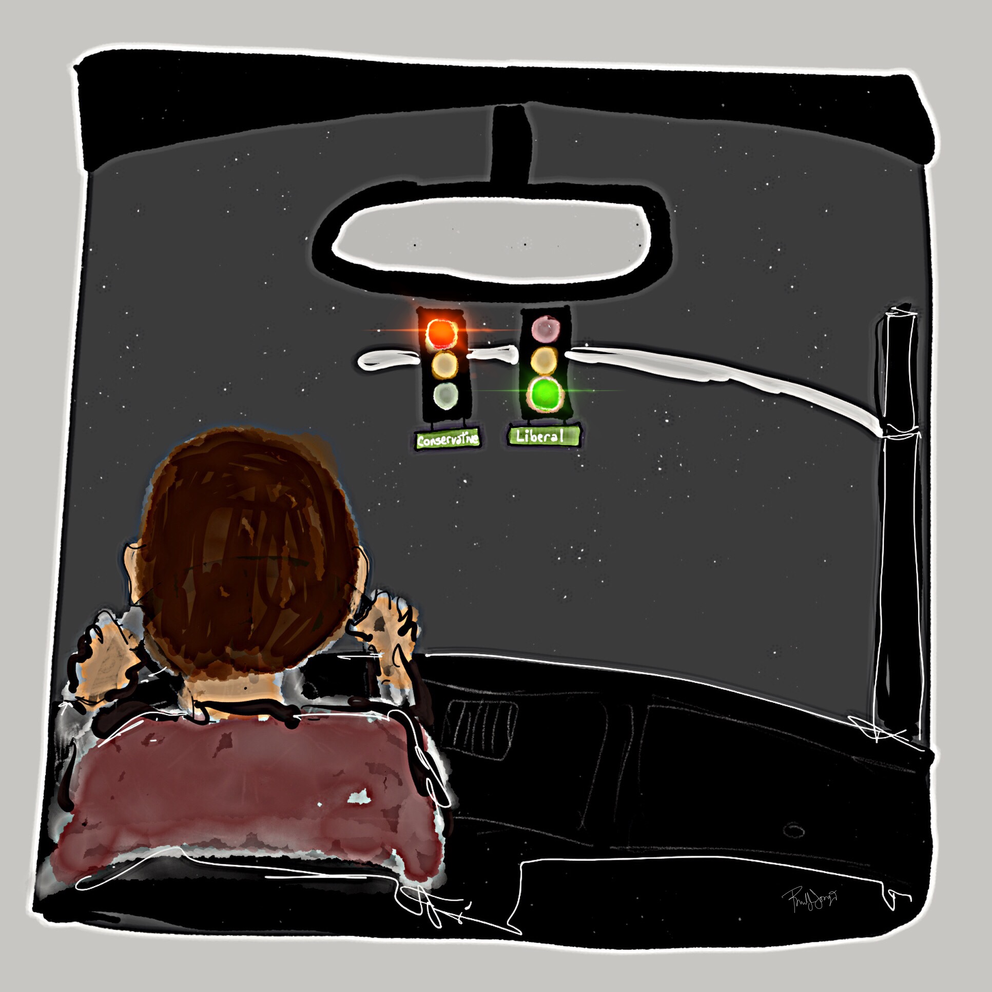 iPad art, Paper 53 or Paper 4 not sure anymore, iColorama to sharpen, Procreate to illuminate the red and green lights, Apple Pencil.