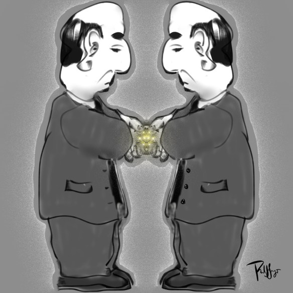 I was in a slump and felt overwhelmed by all the revelations that politics as usual is all about acquiring and retaining power. It happens on both sides of the aisle, but Republicans, I’m convinced – because they’re wealthier and have more to lose – are better at it. And that was before RBG died (see an RBG post from 2014 with video), prompting Republicans to activate their pituitary glands once again for the world to see! So, I sketched out one of my stock, bald-headed “establishment” guys in Sketch Club on my iPad. I copied it, flipped it, added some more details, tweaked it a little in iColorama while recording the “movement,” and then finally editing the video with a soundtrack in Videoshop. As I did this, I realized I was working through an insight, or at least a suspicion, that we attach ourselves to mental constructs, even our sense of self, with whom we dance and dance and dance, as reality goes on in the overlooked background. It’s so hard to detach or let go, but very little acceptance can occur until we do.