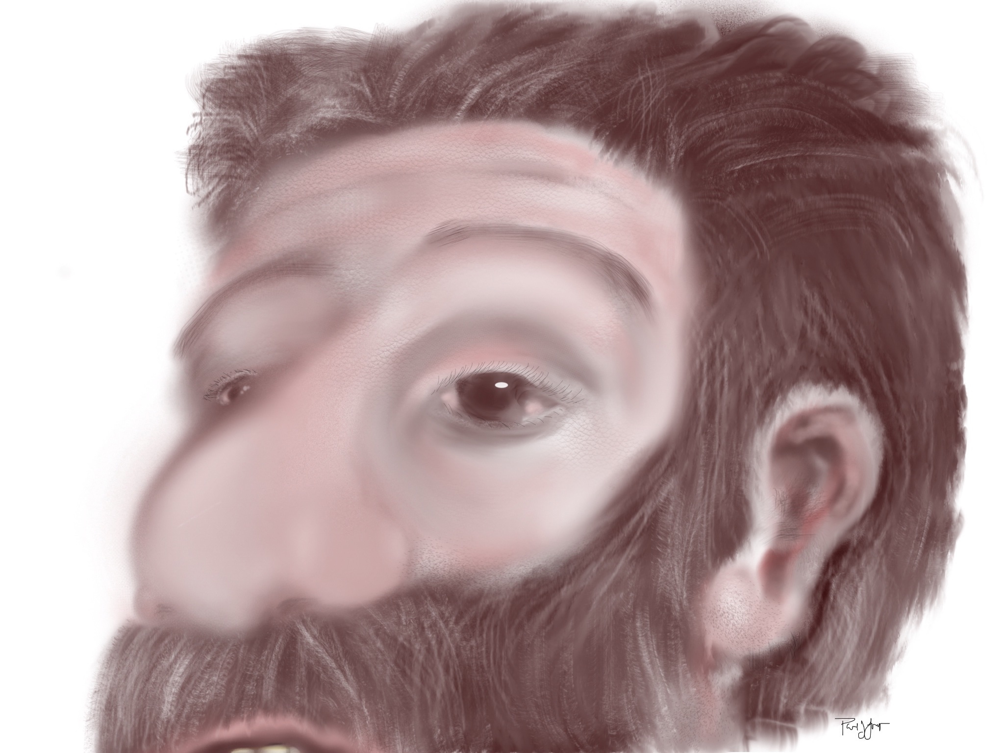 Procreate, the iPad drawing app, is chalk full of features. I may have whined about that already. Actually, I’m learning some new techniques, e.g., smudging. I’d like to become a better smudger, even if I did so curmudgeonly. So, I cranked this one out..and just below it is a 10-second video of the process. Procreate lets you export the entire drawing as a video. I simply increased the play-back in iMovie 20X.