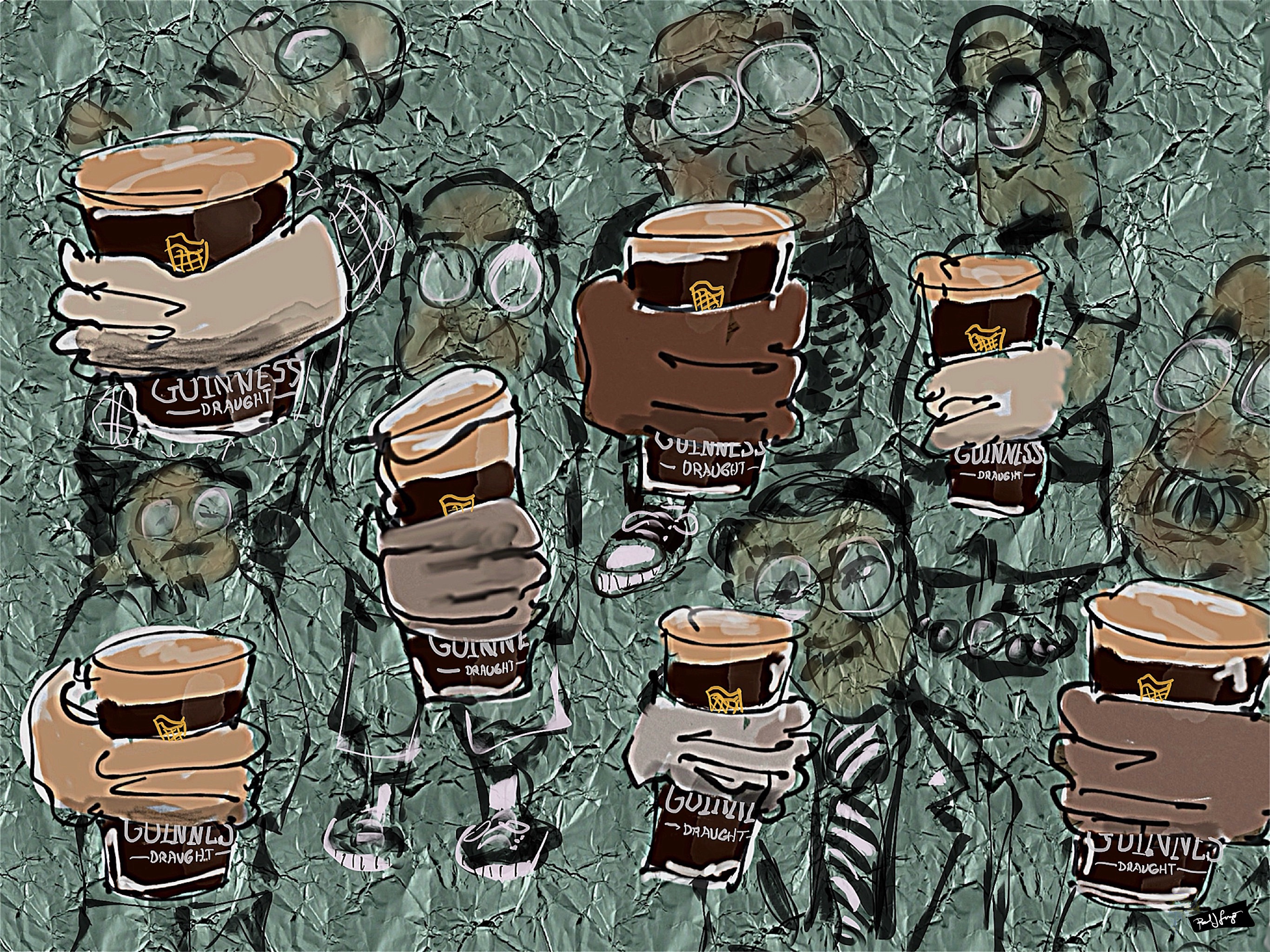 I had my iPad for some live digital painting in the Sketch Club app and was able to focus on one of the local Athens musicians, guitar and fiddle player, Rusty Smith. I finished him before I finished my first Guinness.