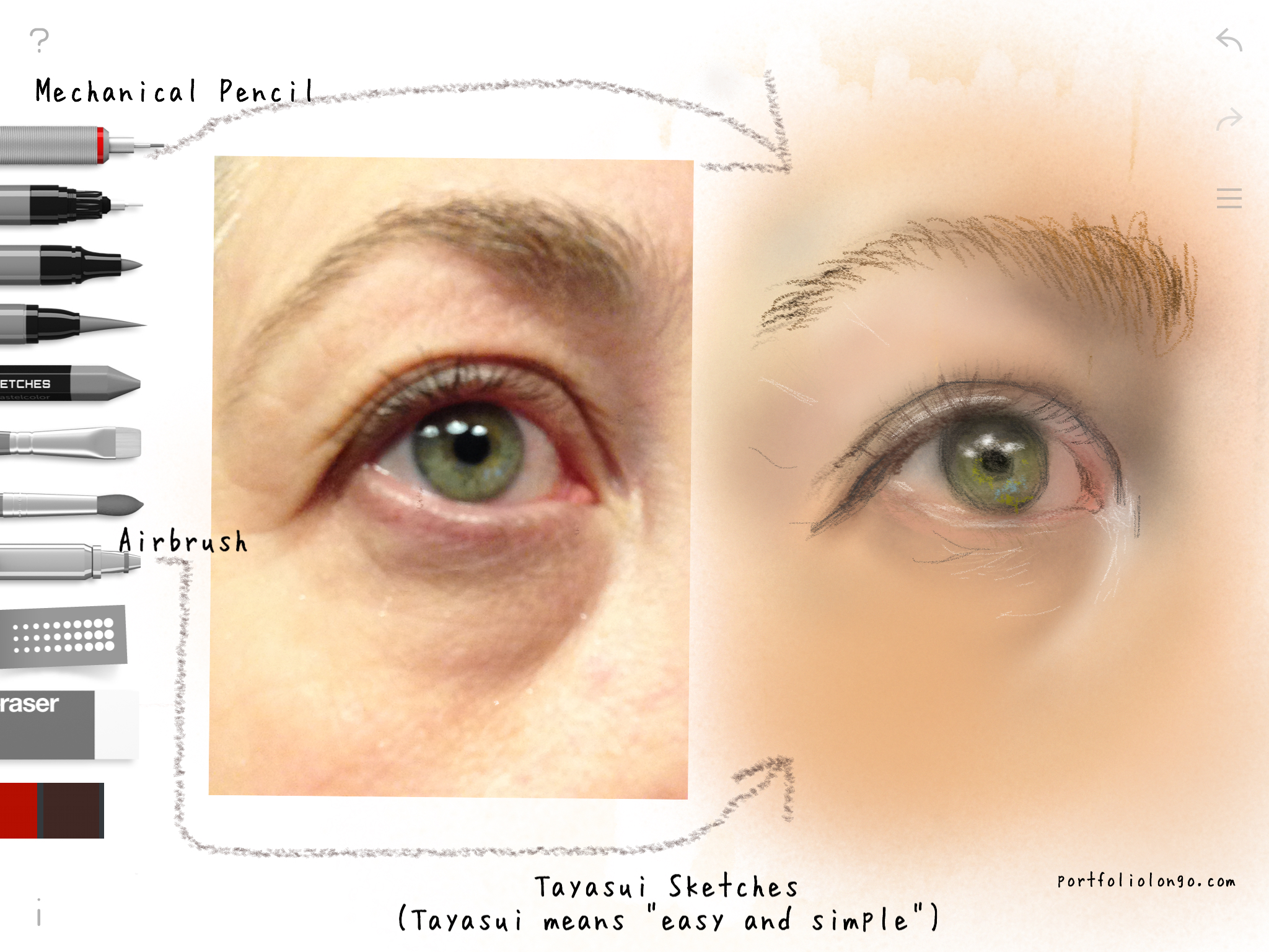 Practicing on the significantly upgraded Tayasui Sketches 2 drawing app. Small tweak in iColorama.