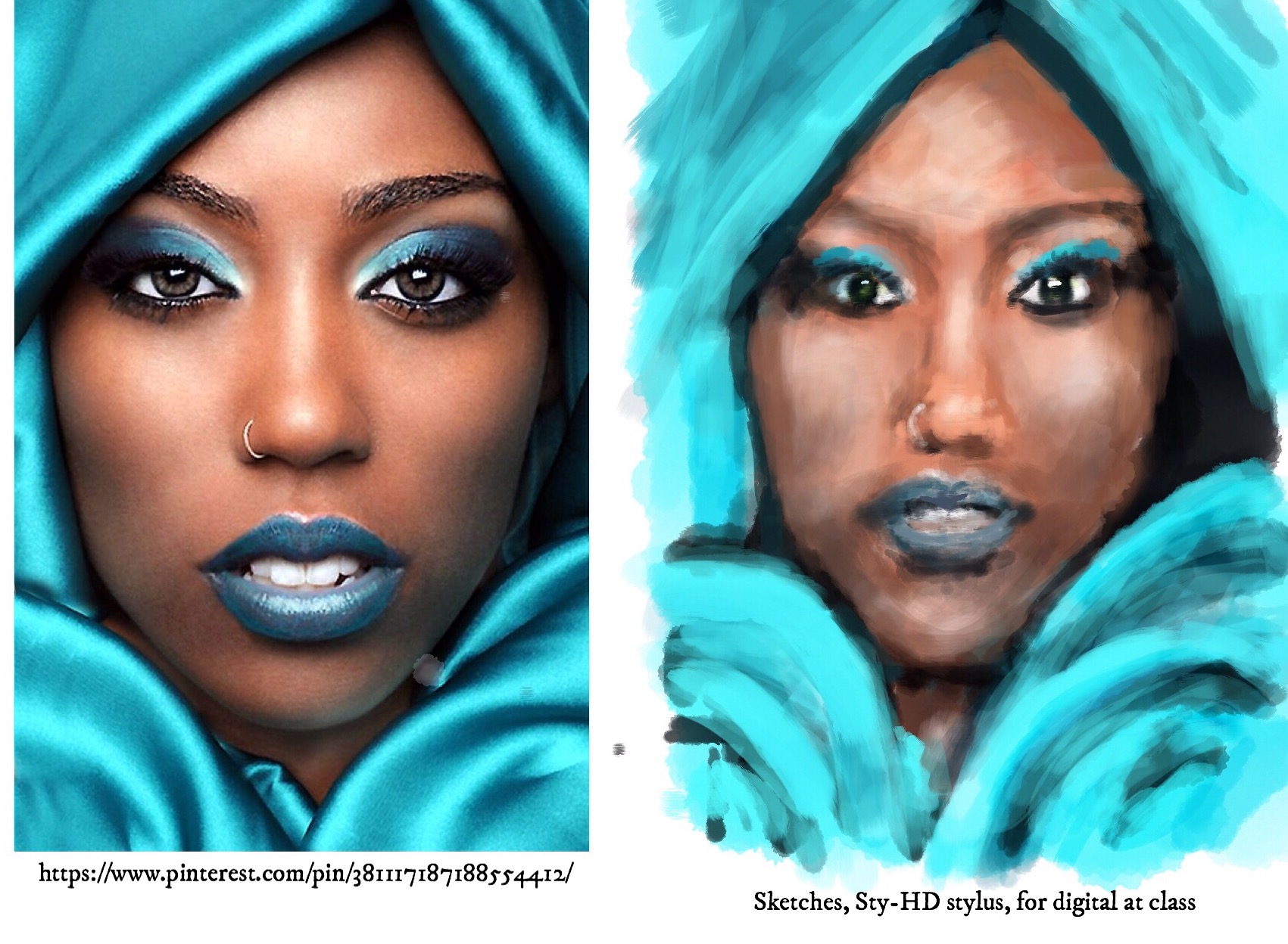 Free hand using this reference photo in Sketches, Procreate, Phonto, with Sty-HD stylus on an iPad Pro.