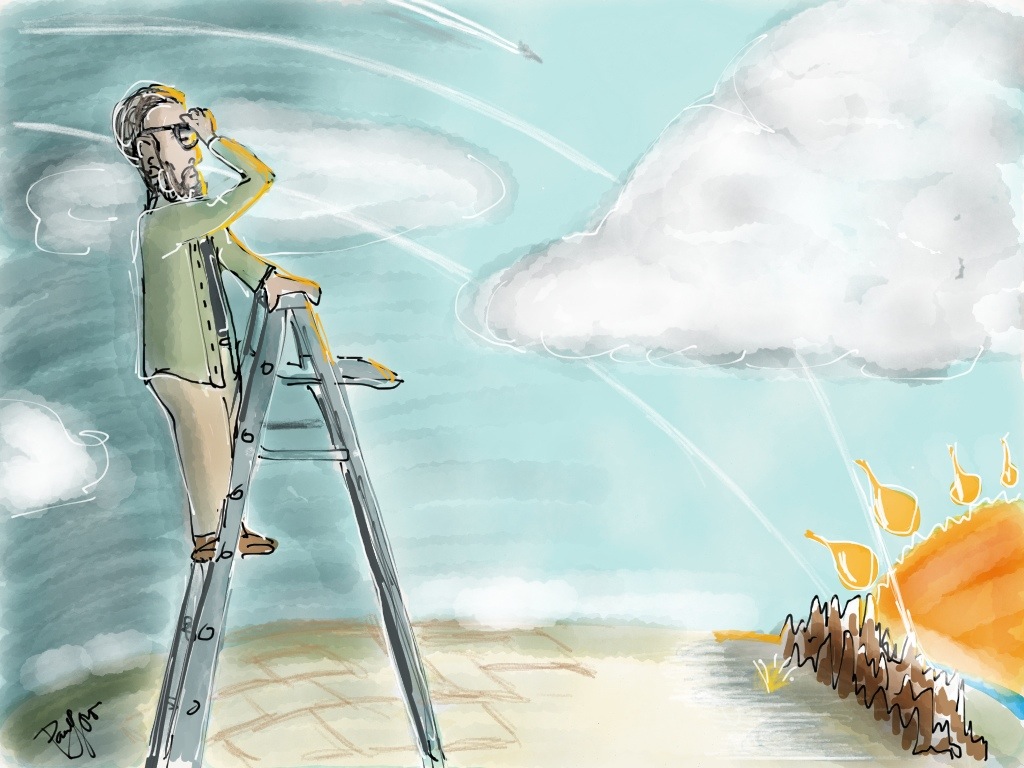 While I had my step ladder out late yesterday afternoon, I couldn’t resist climbing up as high as I could, higher than I’ve ever been before; and to my surprise I could see where all the planes were going. Also saw Ann in a hot tub with a glass of wine.